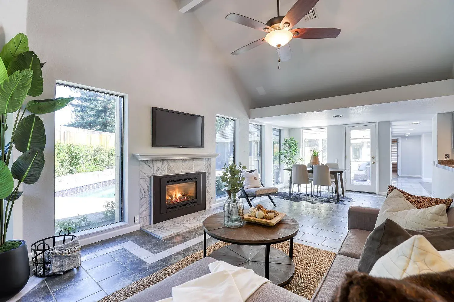 Energy features include a whole house fan, owned solar system, tube lighting, dual pane windows, 2 Tankless Water Heaters for ample hot water supply, 2 HVAC systems for efficient cooling and heating throughout the home, ceiling fans, and two gas insert fireplaces for those chilly winter nights.